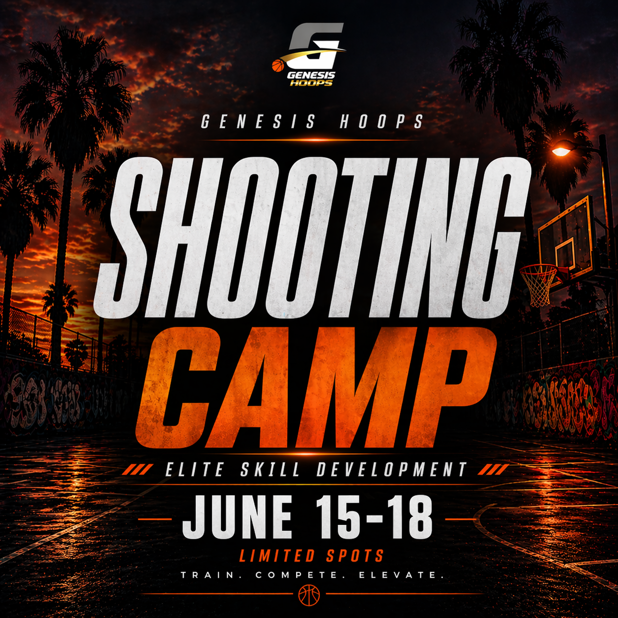 Genesis Hoops offers various camps for all ages and levels. Camps are designed to last for several hours/days and focus on offensive and defensive skills and strategies. Players will rotate between stations focusing on specific skill areas, and will spend time learning, perfecting, and applying the skill from each station. Players will also spend time in game situation match ups, allowing them to begin using and implementing the skills they have learned/perfected from the station skills training.